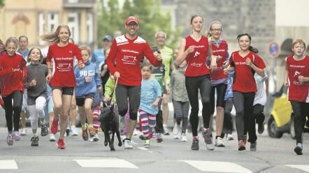 Probelauf: Die Teilnehmer der Zollberg-Realschule haben schon einmal die Strecke getestet. Zusammen mit Rafael Treite, dem Trainer der Leichtathleten der TSG Esslingen, und dessen Tochter Helena liefen die Schüler die Originalstrecke ab und bekamen so schon einmal ein Gefühl dafür, wie viel schwieriger es ist, auf dem harten Kopfsteinpflaster zu laufen anstatt auf einer Tartan-Laufbahn.