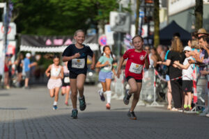 Traditionell starten die Schüler zum Auftakt auf dem „heißen Laufsteg“ durch die Fußgängerzone, Imponierend dabei die beeindruckend große Kulisse am Streckenrand, durch dieses begeisternde Spalier durften sich Toni, Lara-Sophie, Alexander, Julius, Leonardo, Jonathan und Martha als Tagesschnellste wie auch Hunderte Kids feiern lassen. Das kühle Nass an den Entega-Trinkwasserbrunnen war letztlich die überaus willkommene Abkühlung, ehe es zur Kurzsiegerehrung auf die Bühne ging.