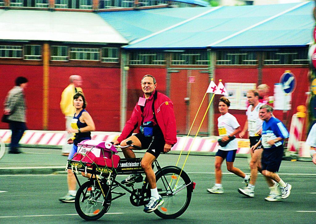 Dr. Willi Heepe patrouilliert während des BERLIN-MARATHON auf dem FAhrrad ©privat