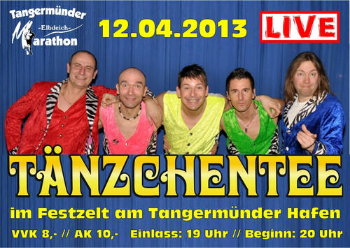 Wir freuen uns, dass wir Euch die Band "Tänzchentee" zur Eröffnung des 6. Tangermünder Elbdeichmarathons präsentieren dürfen. Datum: Freitag, 12.04.2013 ©Tangermünder Elbdeichmarathon