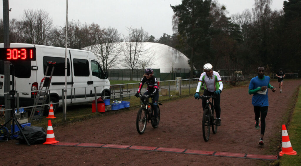 Statt am Teufelsberg waren jetzt Start und Ziel im Stadion Eichkamp (Julius-Hirsch-Sportanlage – Harbigstraße 40 in Charlottenburg). Es ist da nicht so naturbelassen wie am Teufelsberg, aber man hat mit Umkleideräumen und Toiletten mehr „Luxus“ für die Teilnehmer:innen, insofern gibt es doch da gewisse Vorteile.