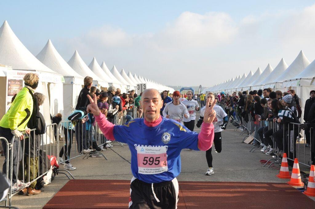 Zuvor hatte die Staffel im Grunewald ihre Runden gedreht. Erstmals gibt es auch eine Halbmarathon-Staffel im Programm. Start, Ziel und die Wechselzone befinden sich in einem ehemaligen Hangar des historischen Flughafen-Gebäudes, was der Veranstaltung einen gewissen Komfort verleiht – bei kühlem Herbstwetter kein unwesentlicher Vorteil.