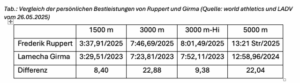 Tab.: Vergleich der persönlichen Bestleistungen von Ruppert und Girma (Quelle: world athletics und LADV vom 26.05.2025)