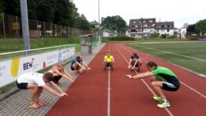 Aufarbeiten von Defiziten (Kraftverluste) durch Athletik – Training z.B. im Fitness- Studio durch Dehnen der verkürzten, meist stärkeren Muskeln und kräftigen der schwächeren Muskulatur, z.B. der meist stärkeren vorderen und der schwächeren hinteren Oberschenkelmuskulatur. Dabei sind alle an der schnellen Laufbewegung beteiligten Muskeln zu berücksichtigen Verbesserung der Gelenkbeweglichkeit durch dynamische Dehnübungen in Verbindung mit Lockerungs-/ Pendelübungen (Dehnen: Ausgangsposition einnehmen, Spannung aufbauen, 6-12 sec. Spannung halten, entspannen / lockern, wiederholen).
