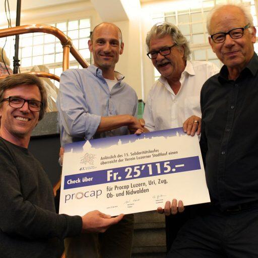 Der Verein Luzerner Stadtlauf hat Procap Luzern, Uri, Zug, Ob- und Nidwalden am Helferfest im Schalander Eichhof einen Check in der Höhe von 25’115 Franken überreicht.