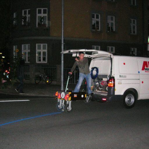 Und am nächsten Morgen staunt Münster beim Aufstehen, wenn auf dem schwarzen Asphalt eine fröhlich wirkende hellblaue Farbe sich vom Asphalt abhebt