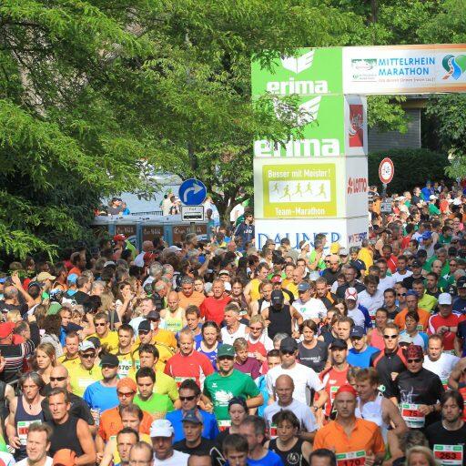 Weltrekordversuch von Rückwärtsskater Werner Fischer im Marathon - Verkehrssperrungen auf der B9, rund um die Mainzer Straße und das Deutsche Eck in Koblenz - Große Marathon-Messe im Kurfürstlichen Schloss in Koblenz