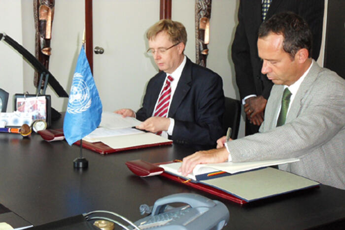 Dr. Reinhard Haßenpflug und Eric Falt bei der Unterzeichnung ©StäV bei der UNESCO