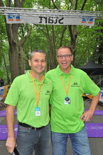 Top zufrieden. Markus Schürbüscher und Ullrich Kuhlmann, die Hauptorganisatoern des ersten Bocholter Halbmarathons im Startbereich an der Alfstraße - Foto: Bruno Wansing, bocholt.de