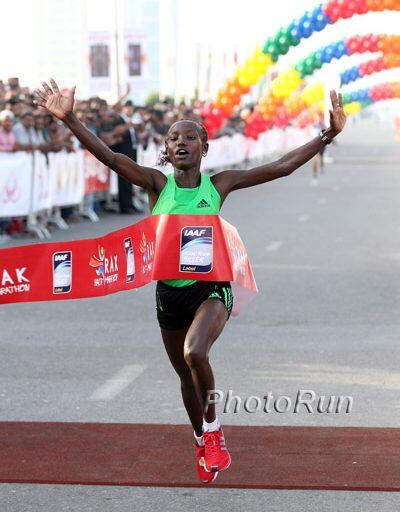 Auch das Rennen der Frauen an der Spitze war hart umkämpft. Hier siegte, nachdem die Favoritin und Vorjahressiegerin Gebre bei 32 km ausgestiegen war, die Äthiopierin Woynishet Girma in 2:3:41