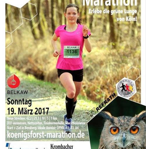 43. Königsforst Marathon mit Halbmarathon am 19. März 2017 – NEU ab 2017 : Zeitplan – Startunterlagen – Start und Ziel
