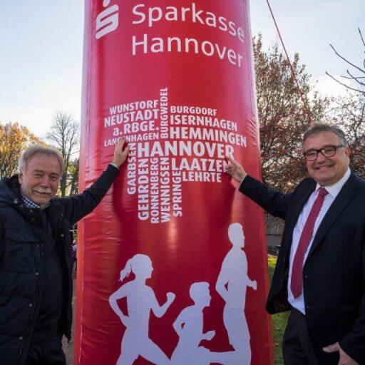 Hoher Besuch am Wochenende beim traditionellen Lönsparklauf in Kleefeld. Regionspräsident Hauke Jagau und der Sparkassen-Vorstandsvorsitzende Dr. Heinrich Jagau ließen es sich nicht nehmen, den neuen Start-/Zielbogen, der ab 2016 allen Veranstaltern der Sparkassen-LAUF(S)PASS-Serie k...