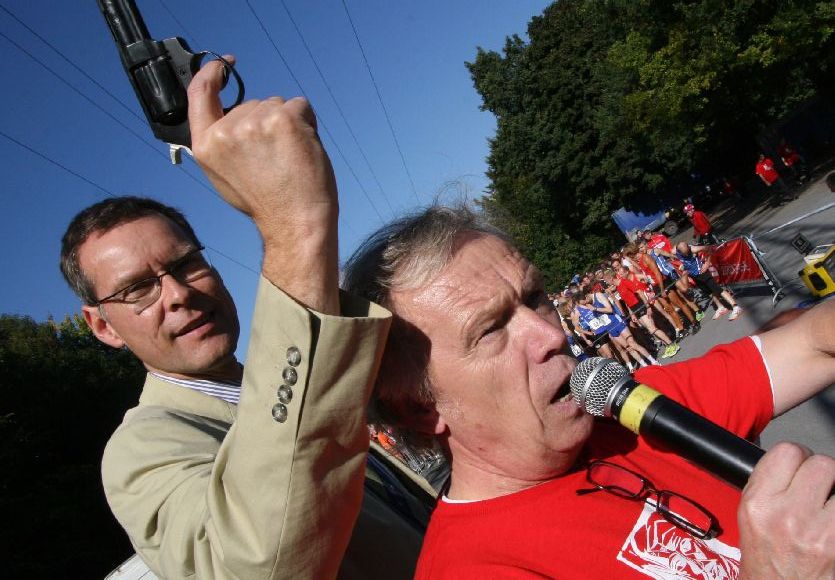 Friedhelm Boschulte sagt an - Bürgermeister schießt den Lauf an ... ©Böckstiegellauf