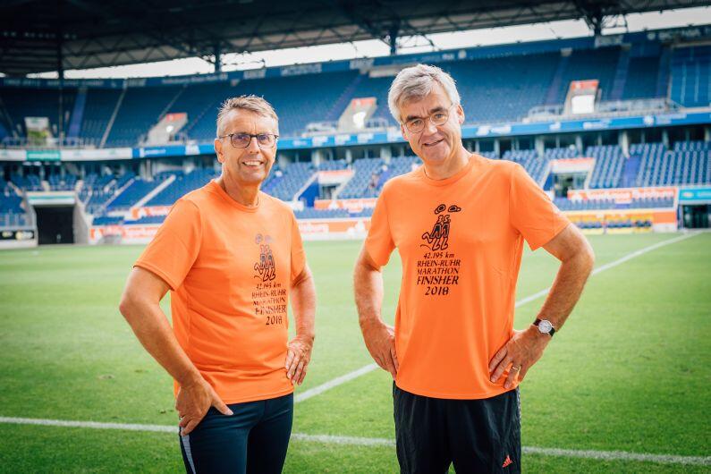 Dr. Johann Weusmann (r.) Vizepräsident der Evangelischen Kirche im Rheinland und Uwe Busch vom Duisburg- :arathon - Foto: ekir.de/Dominik Asbach