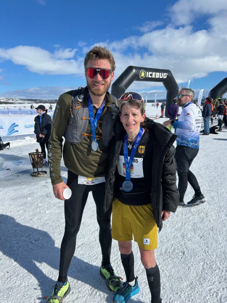 Ungewöhnlich dabei, dass die Strecke auf dem 80 Zentimeter tief gefrorenen See nur mit Spikes oder Laufschuhen mit Nägeleinsätzen gelaufen werden konnte. Bei Temperaturen von wenigen Minusgraden schien zwar durchweg die Sonne, aber ein starker Wind ließ die Teilnehmer doch merklich auskühlen. „Mit der Zeit bin ich natürlich sehr zufrieden. Bei einem Straßenmarathon dürfte diese Zeit eine Endzeit von knapp unter drei Stunden wert sein!“