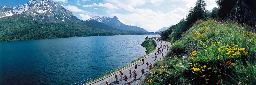 Inline Skating Marathon im Engadin mit Silsersee im Hintergrund - Foto: DATASPORT