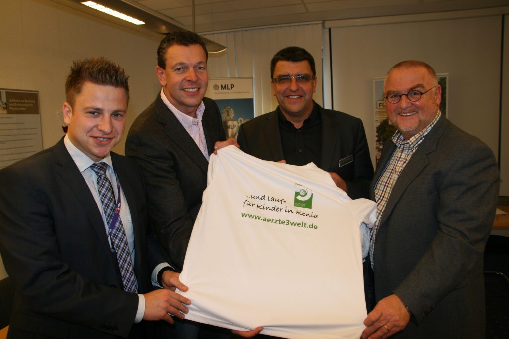 Gemeinsam für Nairobi (v.l.): die Spendenläufer Stefan Hoffmann, Ulrich Fischer und Marcel Everding mit Jürgen Grosse (Ärzte für die Dritte Welt). ©Michael Bald