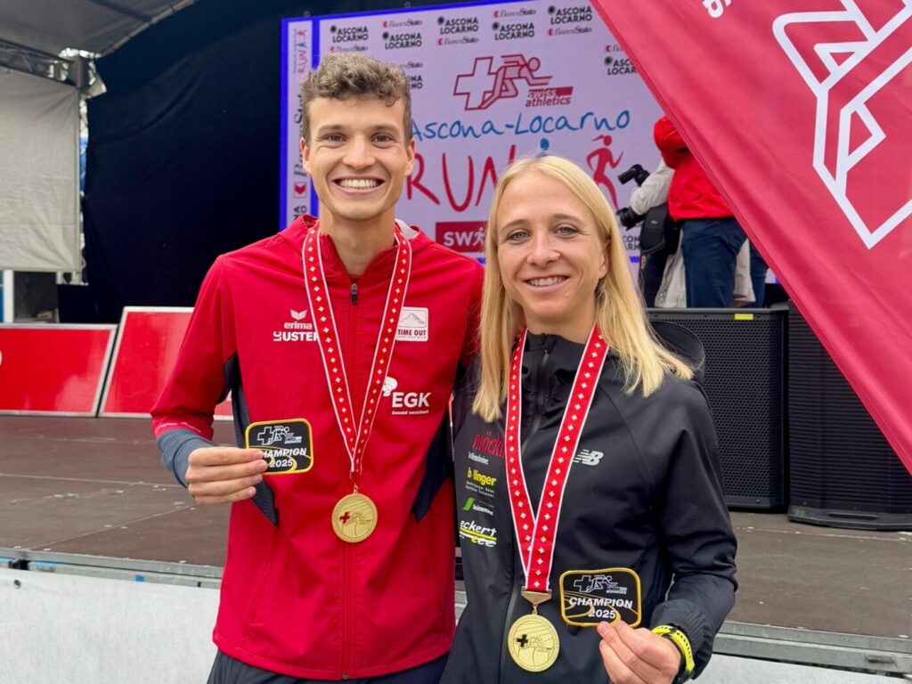 An der Halbmarathon-SM in Locarno holten Fabienne Vonlanthen in 1:14:07 Stunden und Robin Mennet in 1:06:16 Stunden Gold.