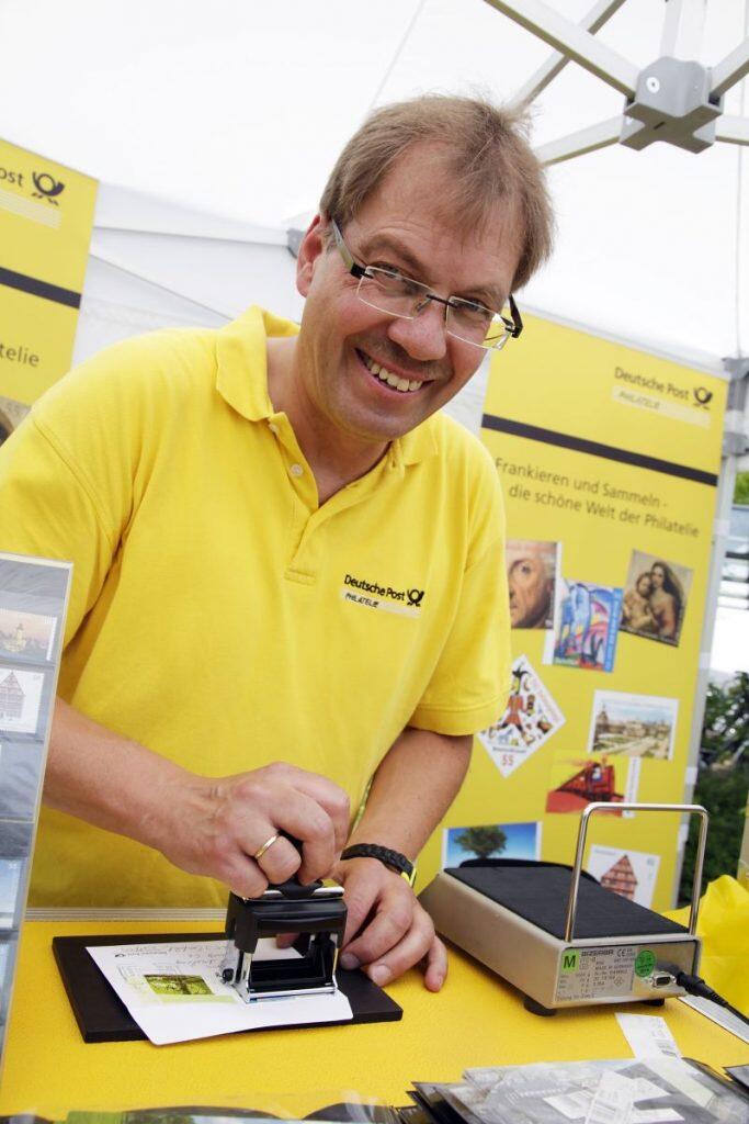 Ein Höhepunkt – nicht nur für Philatelisten – war das Sonderpostamt der Deutschen Post. Zwei Post-Mitarbeiter verteilten Jubiläums-Sonderstempel und verkauften limitierte Klappkarten an die aus ganz Ostwestfalen angereisten Besucherinnen und Besucher.