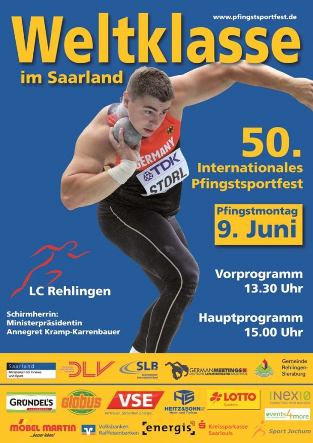 German Meetings – 50. Pfingstsportfest in Rehlingen mit Doppel-Weltmeister David Storl
