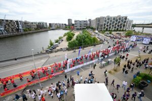 Die Mischung aus Firmen- und Spendenlauf vor interessanter Kulisse erfreut sich wachsender Beliebtheit. Rund 20.000 Teilnehmer:innen gingen für 584 Teams an den Start. Das sind 15,5 % mehr als im Vorjahr – Mitreisende in Kinderwagen und Bürohunde noch nicht mal eingerechnet. Vom lokalen Kleinbetrieb bis zum weltweit agierenden Großkonzern war wieder alles vertreten. Die Teamgrößen reichten von 10 bis 1.300 Mitarbeiter:innen – ein einheitliches Outfit, Flaggen, Jubelposen und sonstige Choreografien sind da obligatorisch.