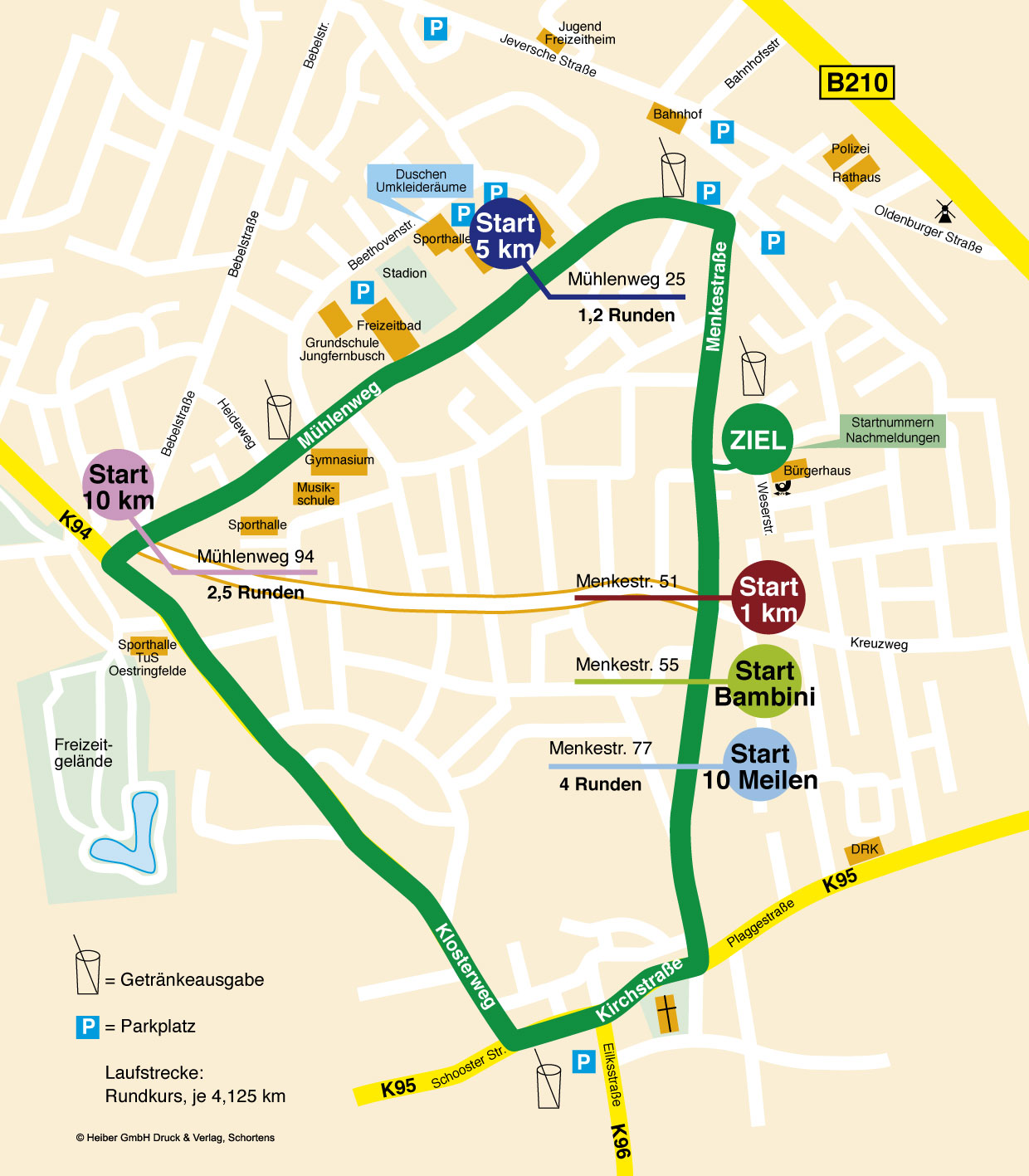 Zuwegung zu den Parkplätzen, Umkleideräumen, Duschen Mit dem PKW: Aus Jever: Richtung Schortens, B 210 bis Ampelkreuzung und weiter wie oben Aus Reepsholt: Schoost, Ginsterweg, Lönsweg, Gorch-Fock-Straße, Bebelstraße, Am Fort, Beethovenstraße Oder stellen Sie sich Ihren persönlichen Reiseplan mit Hilfe eines Routenplaners zusammen. Beachten Sie die Hinweisschilder! Fahrverbot auf der Laufstrecke! |