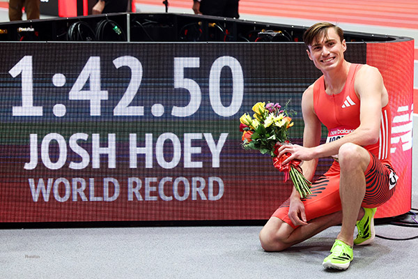 Josh Hoey kündigte seinen Erfolg wie Babe Ruth bei der World Series 1932 an und brach einen der ehrwürdigsten Hallenweltrekorde mit einer atemberaubenden Zeit von 1:42,50 im 800-Meter-Lauf der Männer. Damit unterbot er den 29 Jahre alten Weltrekord von 1:42,67, den der Däne Wilson Kipketer 1997 aufgestellt hatte.