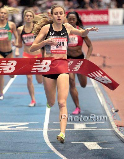 BOSTON -- In yet another record-breaking day at the New Balance Indoor Grand Prix, Mary Cain lowered her own world junior mark for 1000 meters and the US All-Star 4x800-meter team broke a world record set