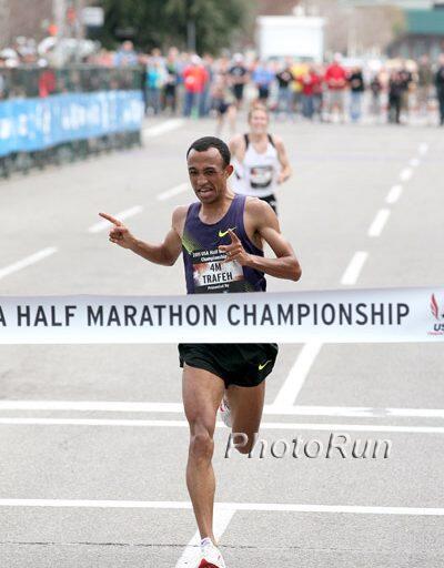 INDIANAPOLIS – A quick early pace and a competitive field helped to propel Mo Trafeh to an American record of 1:14:18 as Dot McMahan took the Women’s title in