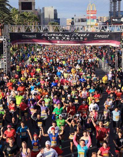 LAS VEGAS – Under the neon lights of Las Vegas Boulevard and a new mid-strip finish line adjacent to the Mirage Volcano, Sunday night (Dec. 2) runners from all 50 states and 52 countries participated in the 2012 Zappos.com Rock ‘n’ Roll Las Vegas Marathon & 1/2