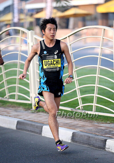 Nuguse was back a few days later at the Fukagawa Meet to win a solid men's 10000 m, leading 7 Japan-based Africans under 28 with a 27:40.78 PB. One of Japan's all-time great track and half marathon runners, Tsuyoshi Ugachi (Team Konica Minolta) returned from overdosing on the marathon in 2014 to finish as the top Japanese man in both the Shibetsu 5000 m and Fukagawa 10000 m, running 13:39.01 and 28:10.49.