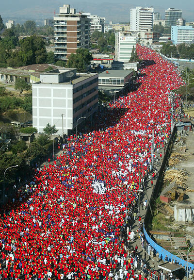 Twelve years ago Ethiopian marathoner Tesfaye Jifar won the New York race in 2 hours 7 minutes and 44 seconds, which was then a course record, and just over 23,500 runners finished the race. Three weeks later the first Great Ethiopian Run 10km took place in Addis Ababa with around 10,000 finishers and Haile Gebrselassie was crowned the race's first champion.