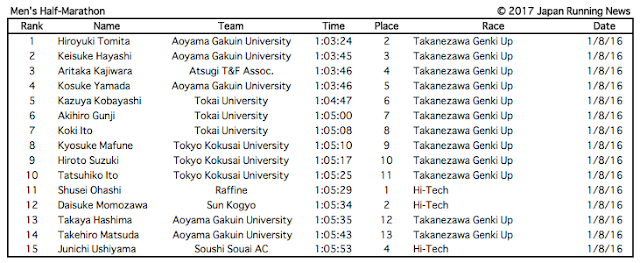 2017 Japanese Distance Rankings – Brett Larner – Japan Running News