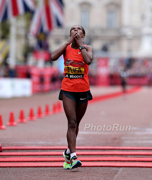 Tufa won the Shanghai Marathon last year but has never featured highly in a World Marathon Majors race, her previous best being eighth in New York in 2013. But today she broke a Kenyan stranglehold on the London title that stretches back over four years.