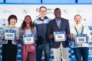 Four exceptional athletes were presented at the press conference in the Hotel Intercontinental whose performances have stamped their authority on the history of the BMW BERIN-MARATHON. In 2001 Naoko Takahashi achieved perhaps the high point in the race’s history when the Japanese ran 2:19:46 to become the first woman to break 2:20. “It felt as if I had achieved something impossible for humanity. This marathon changed my life,” reflected Naoko Takahashi.