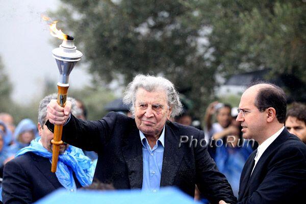 The 6th AIMS Marathon Symposium was preceded by ceremonies at the Tomb of the Marathon Warriors, 5km from the start line of the Athens Classic Marathon, The Marathon flame was lit there, in the presence of the celebrated Greek composer Mikis Theodorakis, after formal addresses and a dramatised prelude.