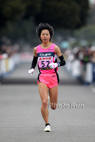 Self-coached and training by herself she made her share of mistakes and was mostly injured in 2013. At the Kurobe Meisui Half Marathon that spring she was the 1st general division woman in 1:23:05, watching from the side as invited runners Azusa Nojiri and Yuki Kawauchi took the top spots on the podium but still winning a trip to run her first race outside Japan at the 2013 Portland Half Marathon in the U.S.A. 2014 by comparison was a breakthrough year. Now 35, she ran just 4 seconds off the track 5000 m PB she had run 17 years earlier with a 16:32.53 at the Shizuoka Time Trials meet. A few months later she was less than a minute off her pro-era half marathon best when she won the Ibigawa Half Marathon in 1:15:54. In December she took that down to seconds off her best with a 1:15:13 course record win at the Isesan Half.