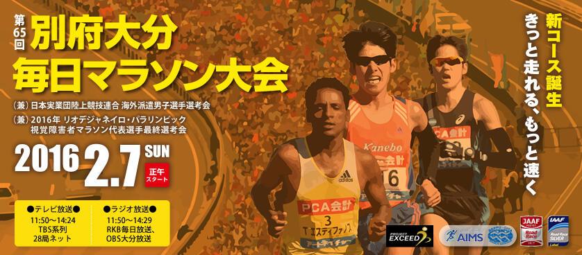 Shut out of inclusion in the selection races for the Rio Olympics men's team the 65th running of the Beppu-Oita Mainichi Marathon was largely a developmental race, the small international field and large field of second-tier and debuting Japanese men setting out in hopes of sub-2:10 times.