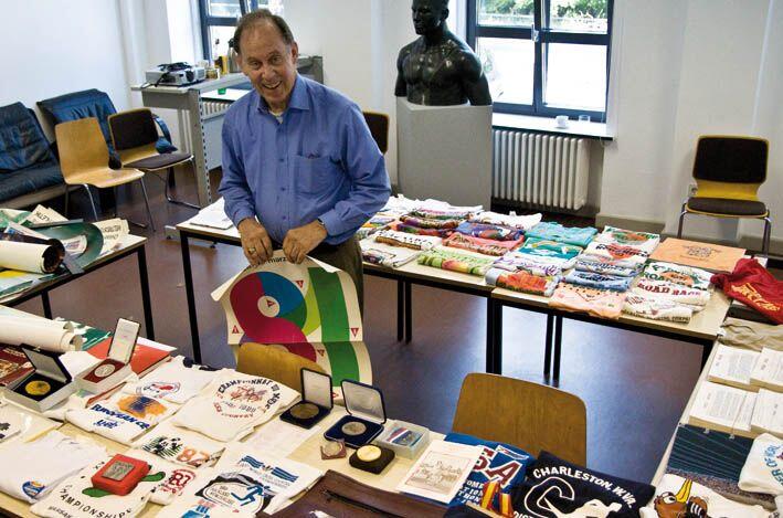 Dr. David Martin with his donations for the Marathoneum in Berlin - Phot:o: Gerd Steins