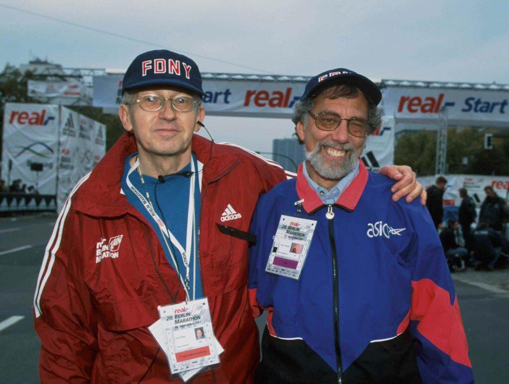 Allan Steinfeld (r) - visiting the Berlin-Marathon 2001 after the attacks in NYC, Horst Milde