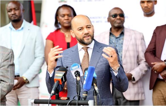 CAPTION: Principal Secretary for the State Department for Sports, the Honourable Jonathan Mueke, addressed the media after the meeting.