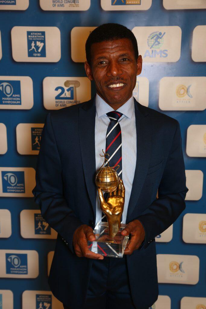 Haile Gebrselassie in Athens with his AIMS Award © AIMS