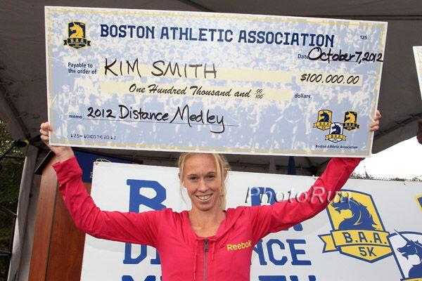 At the London Olympic Games Smith was disappointed with her 15th place in 2h 26m 59s, but she bounced back to win the Boston half marathon and the series prize purse. Smith has been married for the past two months, after marrying Pat Tarpy on 1 September.