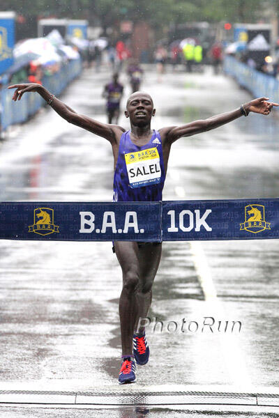 BOSTON, MA – Despite a heavy rain falling consistently from start to finish, Kenyans Daniel Salel and Mary Wacera were able to persevere and prevail at the fifth annual B.A.A. 10K, claiming victories in 28:09 and 32:07, respectively.