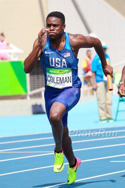 Coleman (Atlanta, Georgia) became the first collegian to run wind-legal times of sub-10 (100m) and sub-20 (200m) at a single meet, winning both the 100m and 200m at SEC Outdoors. Coleman won the 100m in 9.97 and the 200m in 19.98.