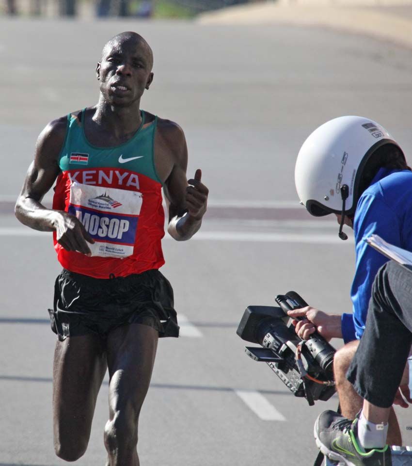 But leading the men’s pack is Moses Mosop, the second fastest man in history, with his 2.03.06, four seconds behind Geoffrey Mutai, in Boston last year. ©Helmut Winter
