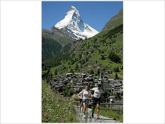 ZERMATT, 7JUL07 - Laufimpression vom Zermatt Marathon oberhalb von Zermatt mit Blick auf das Matterhorn am Samstag, 7. Juli 2007. Der anspruchsvolle Berglauf zaehlt zusammen mit dem Jungfrau-Marathon und dem LGT Alpin Marathon fuer den Mountain-Marathon-Cup. Impression of the Zermatt Marathon in the canton Wallis, Switzerland, on Saturday, July 7, 2007. swiss-image.ch/Photo by Andy Mettler