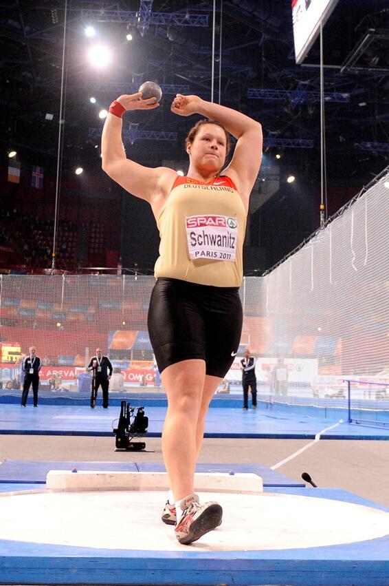 But at 27, now could be the time for Schwanitz to celebrate glory after finishing second at the European Athletics Indoor Championships in Paris in 2011 with 18.65m, as Russian Anna Avdeyeva won with 18.70m.