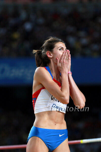 She cleared a world-leading 2.05m at the Russian championships and then won the world title in Daegu when she went over 2.03m with her first attempt to clinch victory from Croatia's 2010 European Athlete of the Year Blanka Vlašić, who was troubled by injuries for much of the year but made that heigh – a season's best and her 160th actual jump of two metres or higher – at her second attempt.