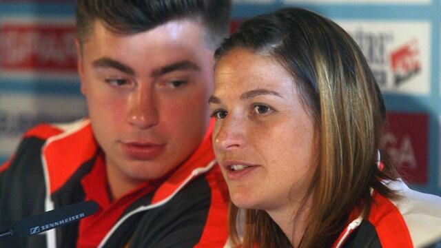 Germans David Storl and Linda Stahl at the official press conference ahead of the Braunschweig 2014 European Athletics Team Championships. ©European Athletics